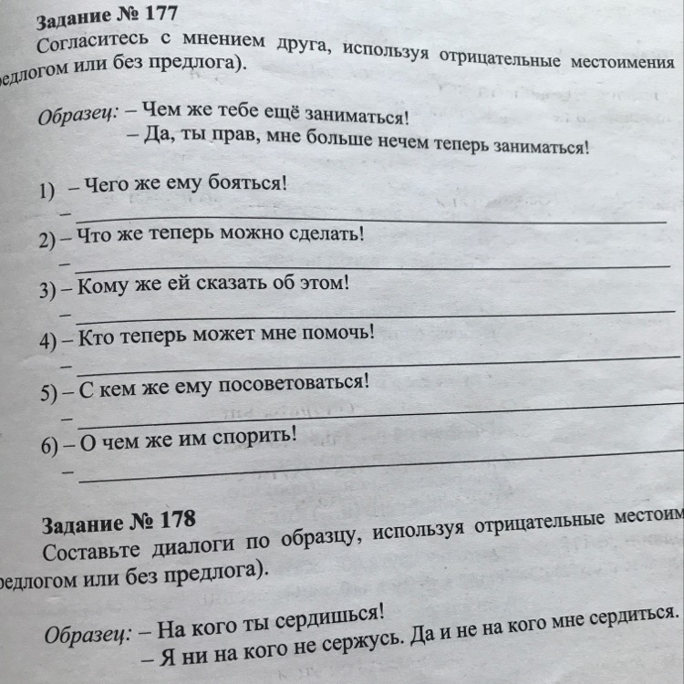 Согласитесь с мнением друга,используя отрицательные местоимения(с предлогом или без предлога)