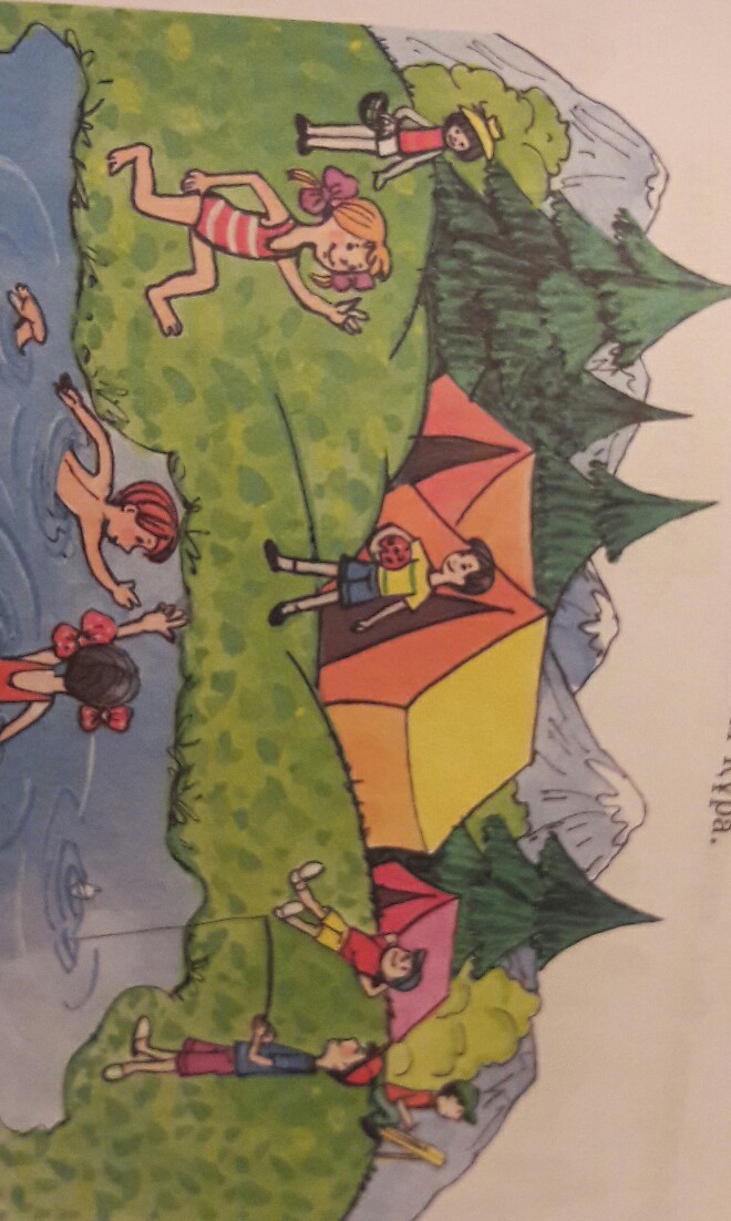 Бір күні балалар көлге барып,сол жерде демалып қайтуды шешті.Олардың саны 8.Айгүл әдемі жерлерді түсіріп жүр,ал Аяна суға түсейіндеп бара жатыр.Екі бала суға түсіп жүр.Олардың аты:Ерлан,Айжан.Ал Асыл демалып жатыр.Ержан болса балық аулап жатыр.Ал Нұржан ол жердің табиғатын бейнелеп жатыр.