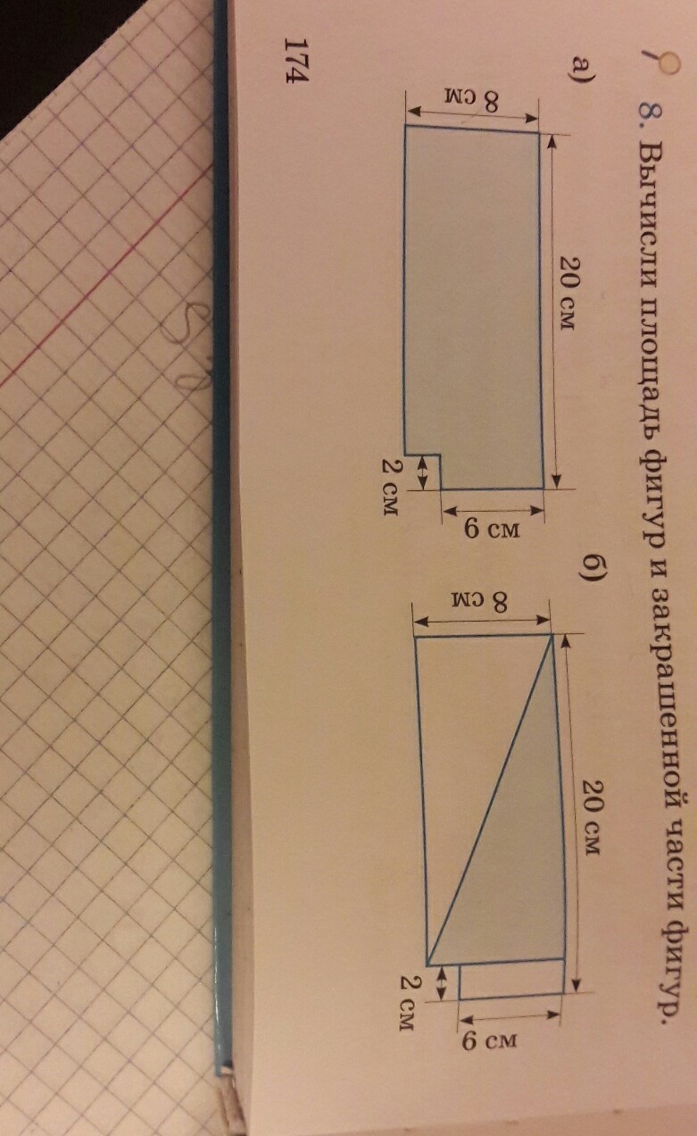 помогите с первой задачей!!! Пожалуйста! Вычисли площадь фигур и закрашенной части фигур