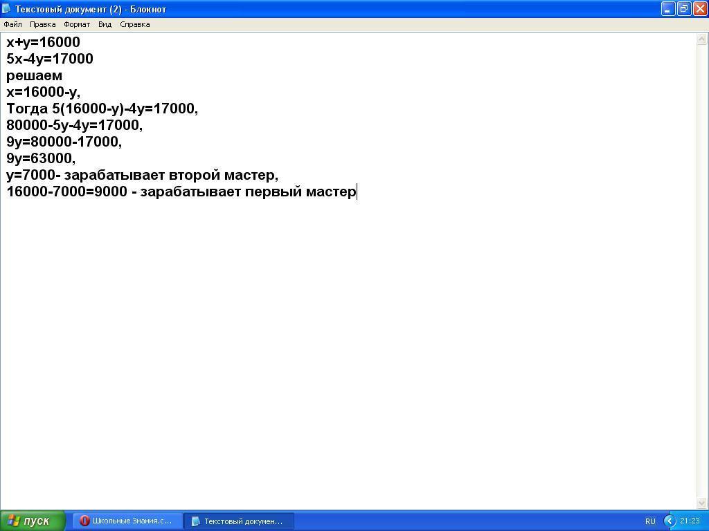 Заработная плата двух мастеров за один день равна 16.000 теньге