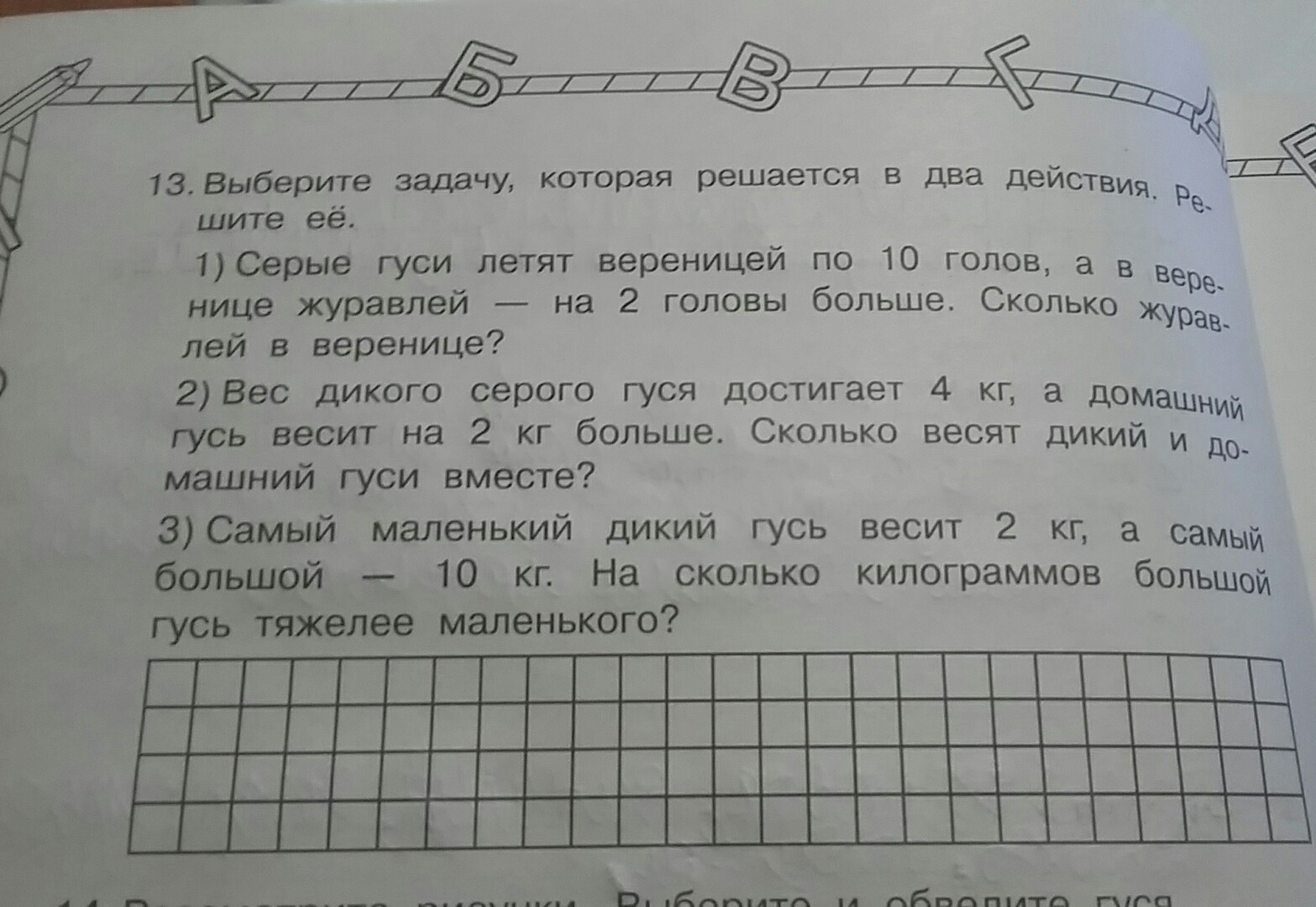 2).6+4=10(кг)-вес дикого и домашнего гусей.