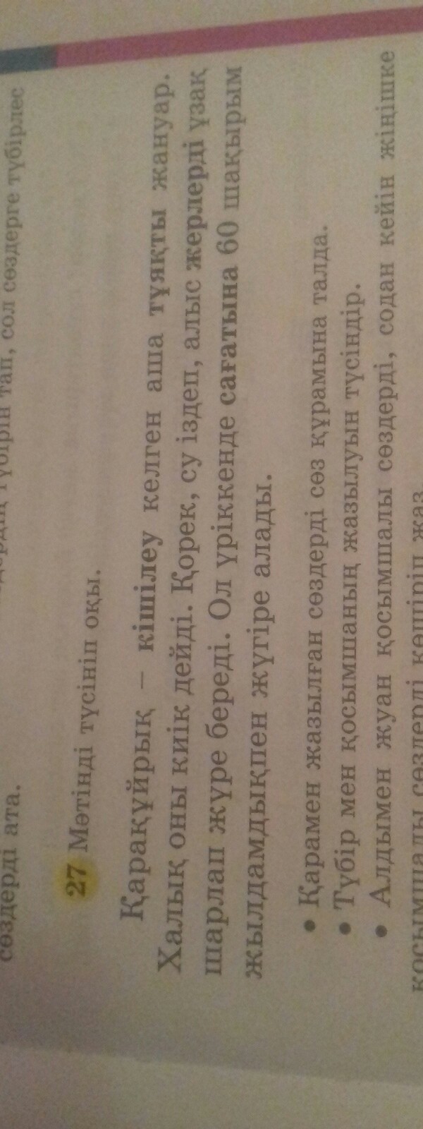Кіші леу(жалғау) Тұяк ты(жұрнақ)Жер лер ді(жалғау) Сағат ы на (жылғау)