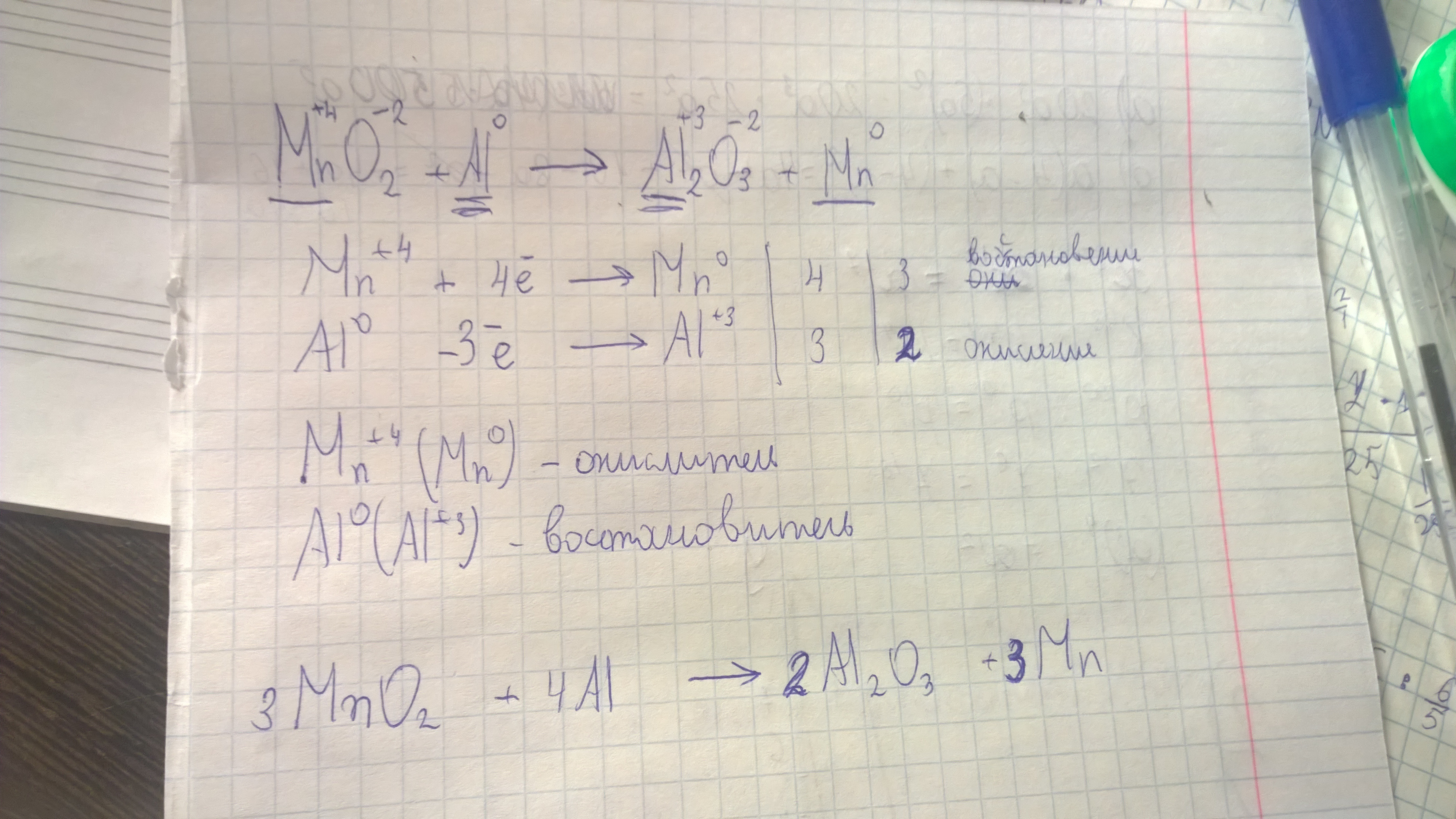Mn(+4) + 4e = Mn(0) 4/12/3 восстановление/окислитель