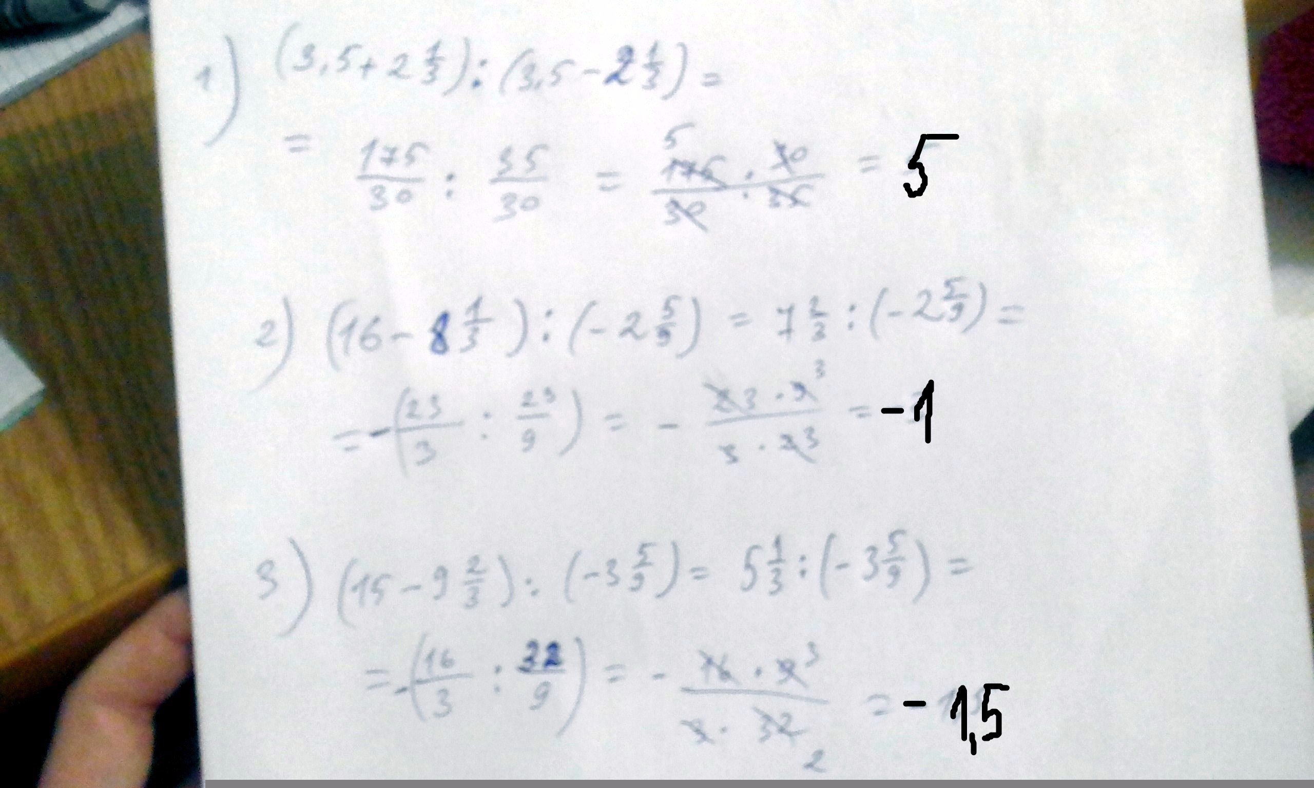 Найдите значение выражения: (3,5 + 2 целых 1/3) : (3,5 - 2 целых 1/3)
