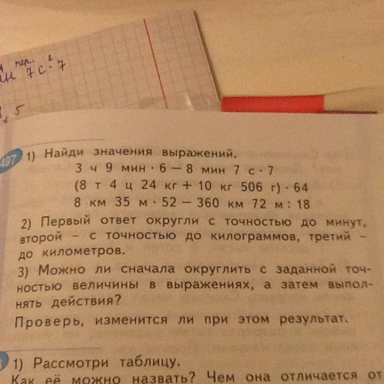 1) 3 ч 9 мин * 6 - 8 мин 7 сек * 7 = 18 ч 54 мин - 56 мин 49 сек = 17 ч 57 мин 11 сек (8 т 4 ц 24 кг + 10 кг 506 г) * 64 = (8 т 4 ц 34 кг 506 г) * 64 = 512 т 256 ц 2176 кг 32384 г = 384 г + 8 кг + 8 ц + 27 т +512 т = 539 т 8 ц 8 кг 384 г 8 км 35 м * 52 - 360 км 72 м / 18 = 416 км + 1820 м - 20 км 4 м = 417 км 820 м - 20 км 4 м = 397 км 816 м2) 17 ч 57 мин ; 539 т 8 ц 8 кг ; 398,0 км3) Можно , 3 ч 9 мин * 6 -8 мин * 7 = 18 ч 54 ми - 56 мин = 17 час 58 мин (8 т 4 ц 24 кг + 10 кг) * 64 = (8 т 4 ц 34 кг) * 64 = 512 т 256 ц 2176 кг = 76 кг + 7 ц + 539 т = 539 т 7 ц 76 кг 8 км * 52 - 361 км / 18 = 416 - 20,0 = 396 км) 4) Результат изменится так,+ 1мин; - 32кг;- 2 км