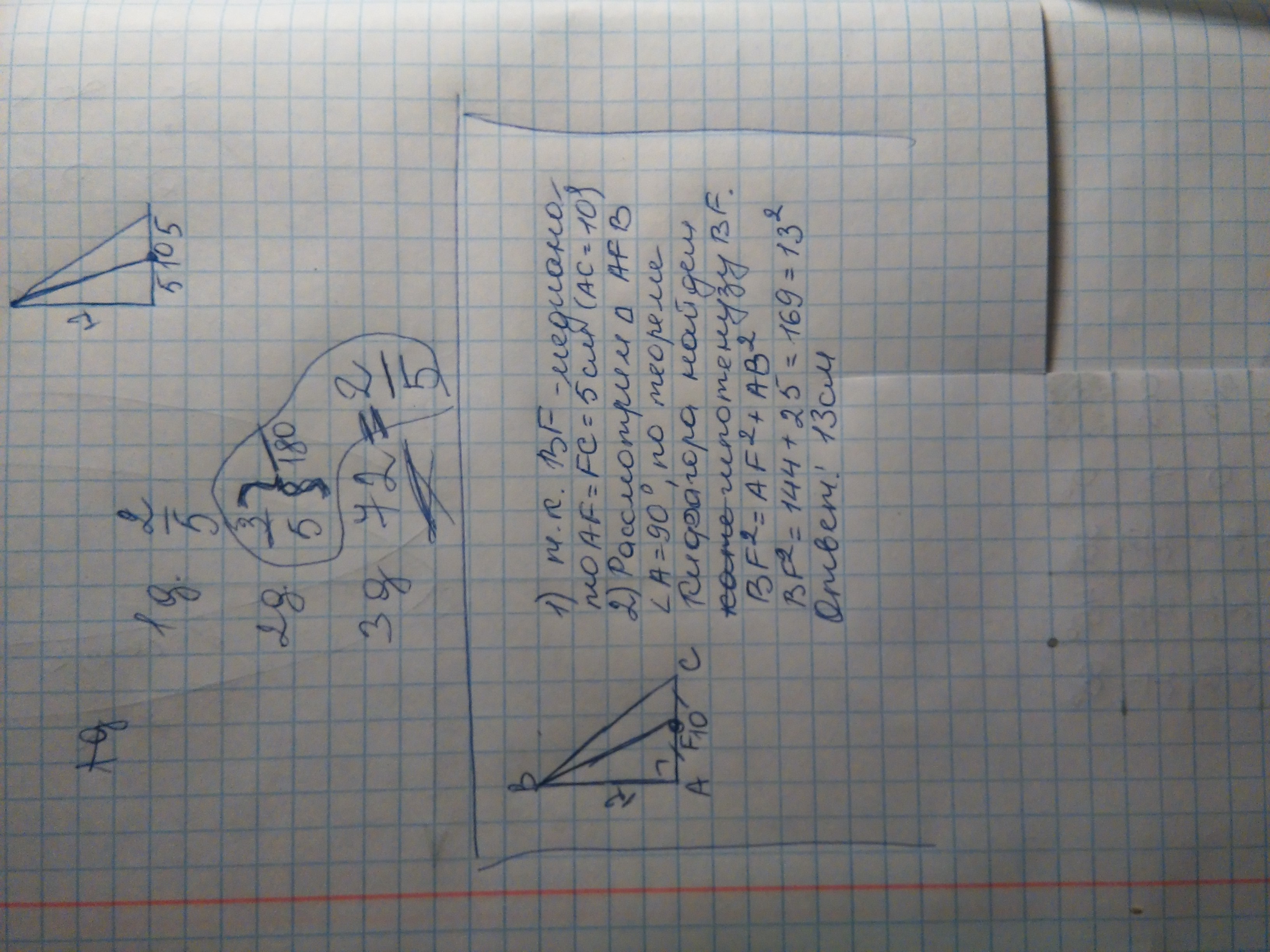 катети прямокутного трикутника дорівнюють 12 см і 10 см. знайдіть довжину медіани, проведеної до меншого з катетів