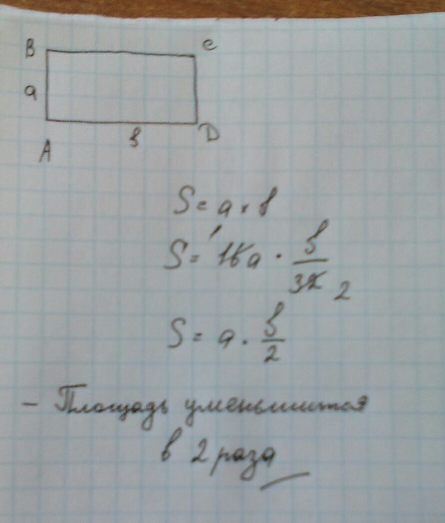Как ищменится площадь прямоугольника если его длину уменьшить в 32 раза а ширину увеличить в 16 раз