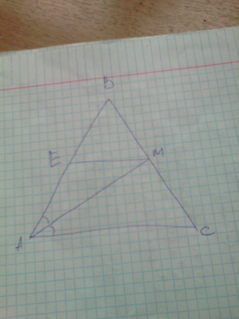Решить задачу и сделать рисунок. Отрезок АМ - биссектриса треугольника АВС. Через точку М проведена прямая, параллельная АС и пересекающая сторону АВ в точке Е. Доказать, что треугольник АМЕ равнобедренный.