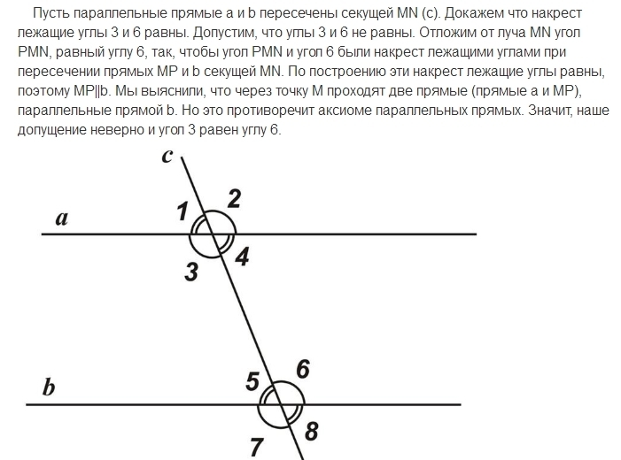 доказать что при пересечении двух параллельных прямых секущей соответственные углы равны. Только коротко