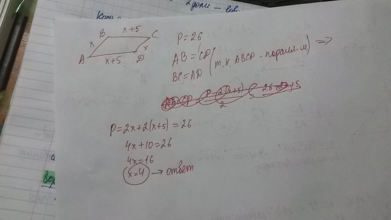 Периметр параллелограмма равен 26 одна сторона параллелограмма на 5 юольше другой . Найдите меньшую сторону парал