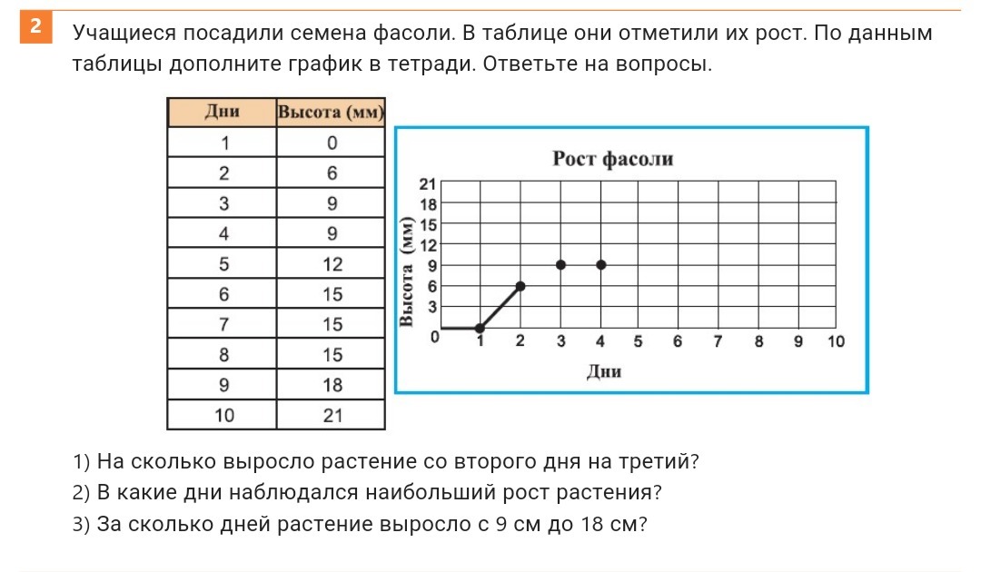 2)с первого на второй день растение выросло аж на 6 см , это наибольшой рост