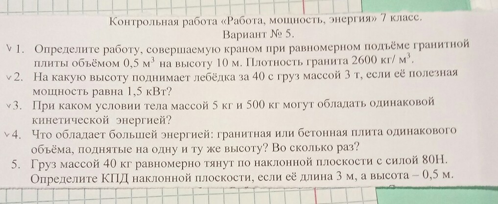 определите работу, совершаемую краном при равномерном подъеме гранитной плиты объёмом 0.5 м3 на высоту 10м. Плотность гранита 2600 кг/м3