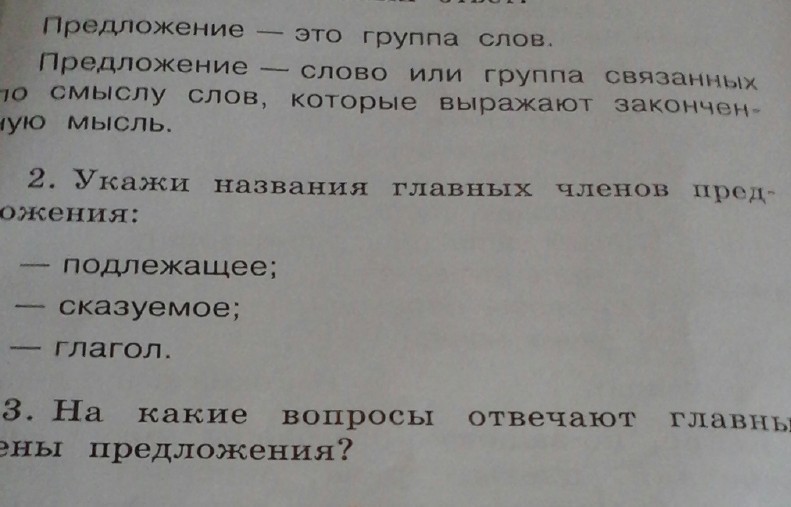 главные члены предложения отвечают на вопросы подлежащее кто что
