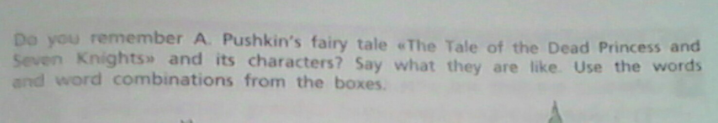 Вы помните произведение А.Пушкина "Сказка о мертвой царевне и о семи богатырях" и персонажей оттуда? Опишите их. Используйте слова и выражения из рамок.