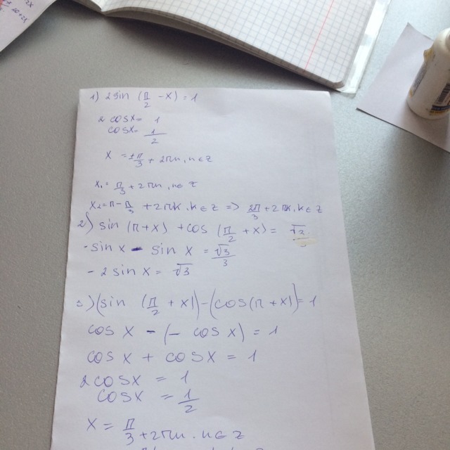 2. sin(п+x)+cos(п/2 +x)= корень из 3 (v3)