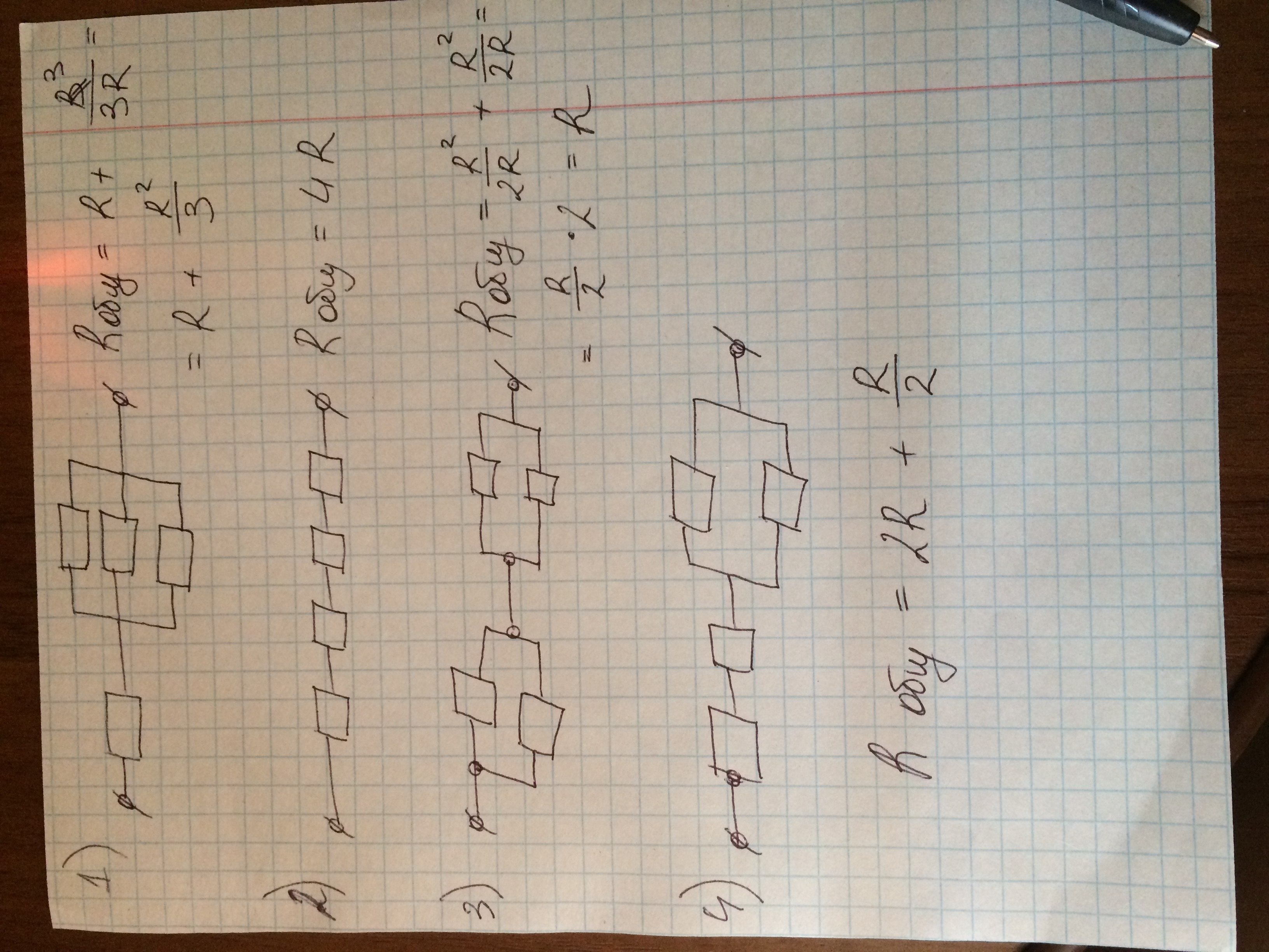На листочке нужно составить все возможные расположения 4 резисторов в цепочке