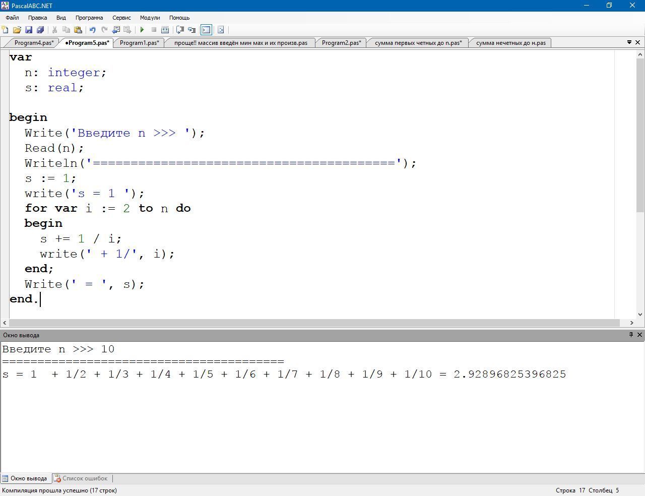 3) Найти S=1+1/2+1/3+...1/n.
