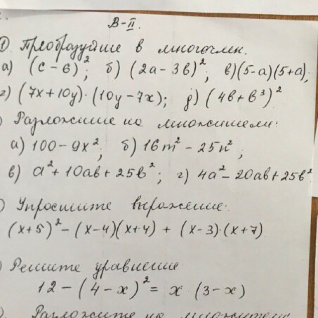 1.г)Там вроде поставить минус ко второму.И тогда они станут одинаковые (кроме плюса и минуса)и можно будет использовать формулу а2-в2=(а-в)(а+в)