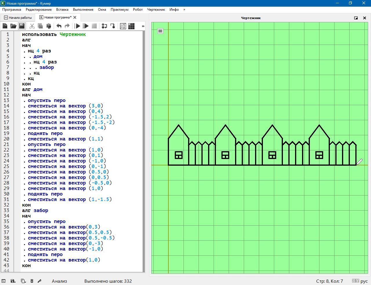 Составьте алгоритм управления чертежником для этой картинки, используя также вспомогательные алгоритмы