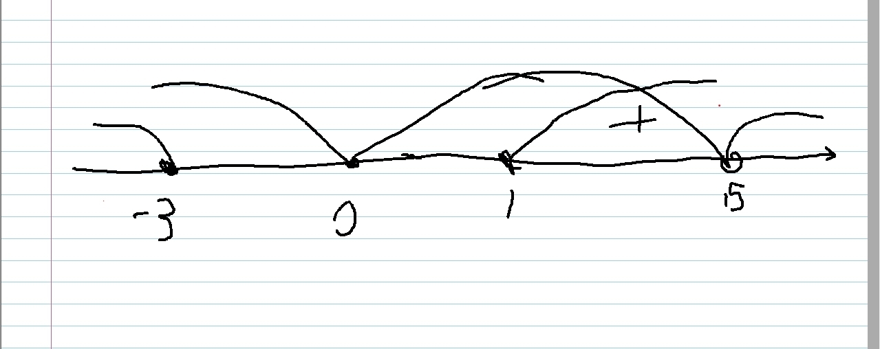 Ответ: (-беск до -3) (1 до 15) (15 до + беск)
