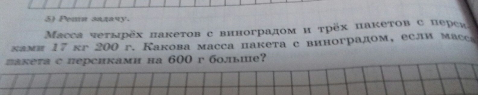 3)15.4/4=3.85(кг) масса 1 пакета с виноградом