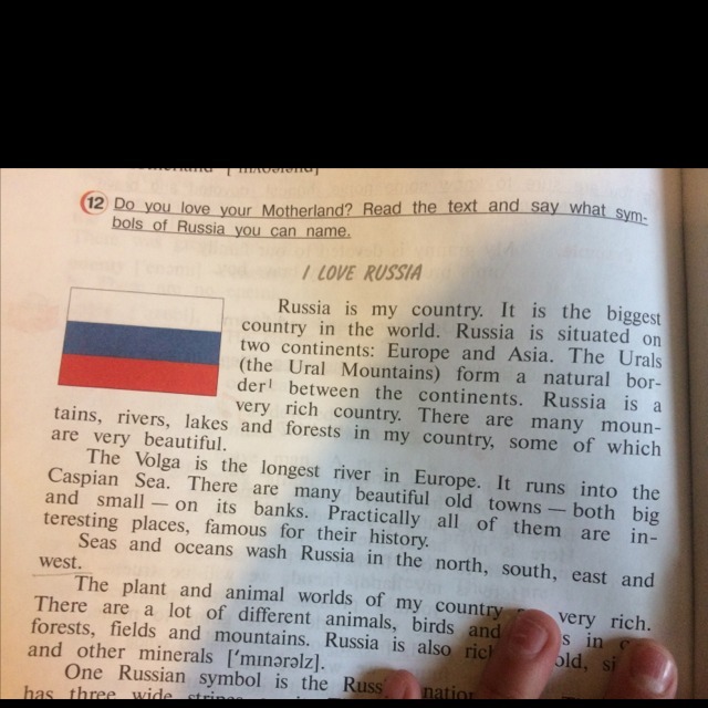 (2 ты любишь свою Родину? Прочитайте текст и сказать, что сим. коробочек России Вы можете назвать. Люблю Россию-это моя страна. Это самая большая страна в жо двух континентах: Европе и Азии. Урал (Уральские горы) образуют естественную хамом - олень! между континентами. Россия очень богатая страна. Там много гор, некоторые из которых очень красиво впадает в Каспийское море. Есть какие-либо красивые старые города, и большие и маленькие - на ее берегах. Практически все из них интересных мест, знаменитых своей историей морей и океанов омывают Россию на севере, юге, Востоке и западе растительного и животного мира нашей страны, есть много разных животных, птиц SA очень богат. леса, поля и горы. Россия также находится и другие полезные ископаемые "minaralzl один русский символ Русь