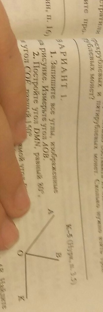 запишите все углы, изображеные на рисунке.Измерьте угол AOB. Постройте угол DMN,равный 80градусов,и угол COE,равный 150градусов