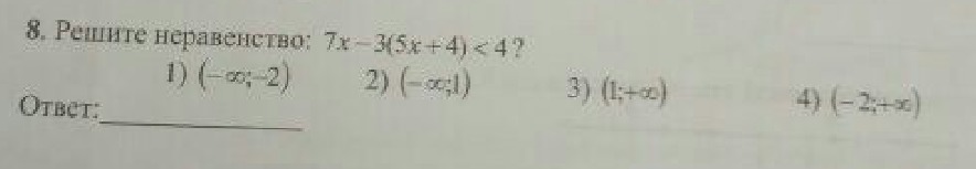 Решите не равенство 7х - 3(5х+4) < 4 ? ( Фото приложил )