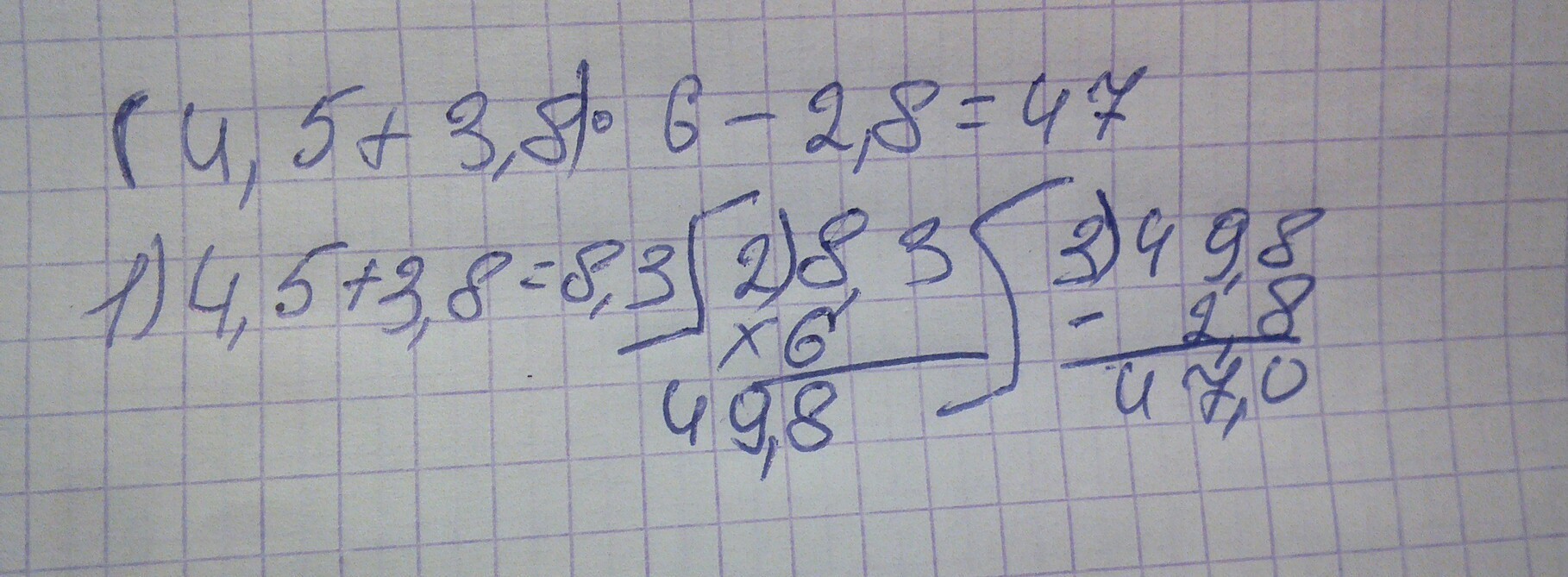 3) 49,8--2,8=47,0=47