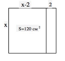 от листа картона, имеющего форму квадрата, отрезали полоску шириной 2 см. В результате получился прямоугольник площадью 120 см2. Каковы размеры исходного листа картона?