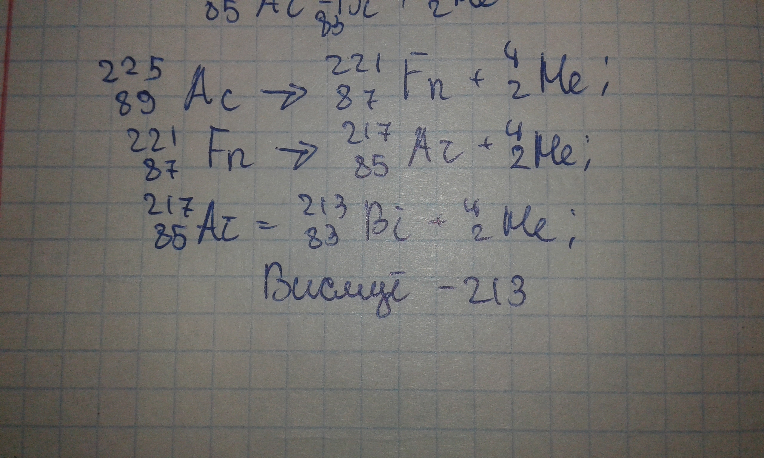 Какой элемент образуется после трехкратного альфа-распада из изотопа актиния