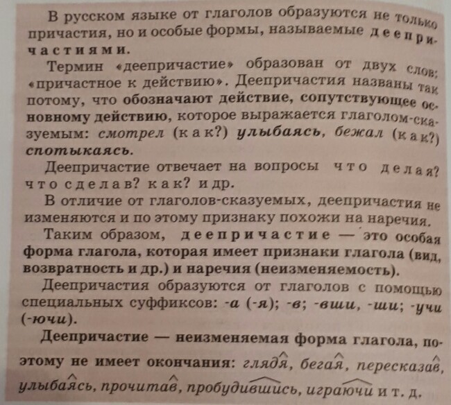 1. Деепричастие - самостоятельная часть речи, которая обозначает добавочное действие при основном действии, выраженным глаголом.