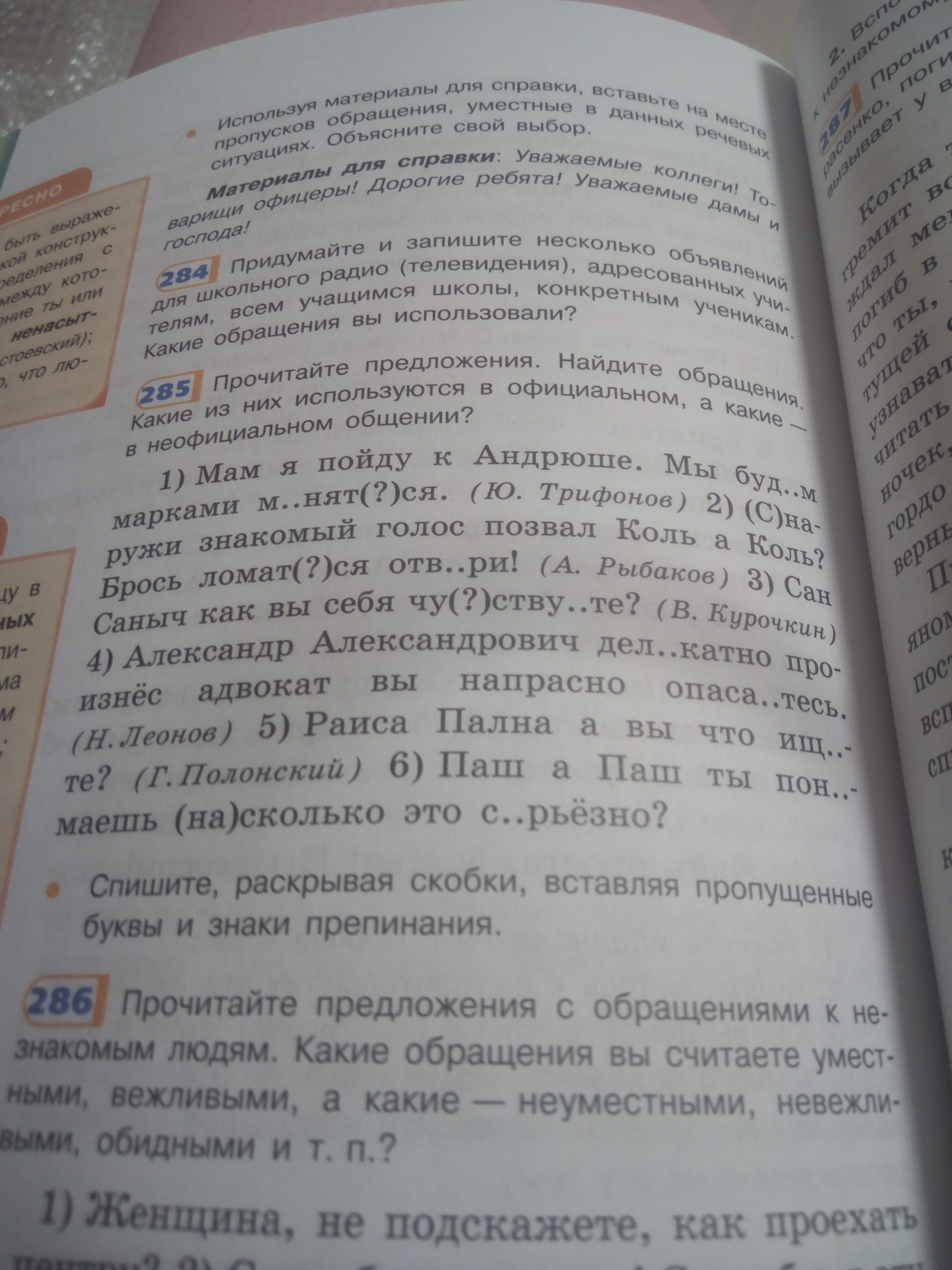 Мам,Коль,а Коль,Сан Саныч,Александр Александрович,Раиса Пална,Паш,а Паш