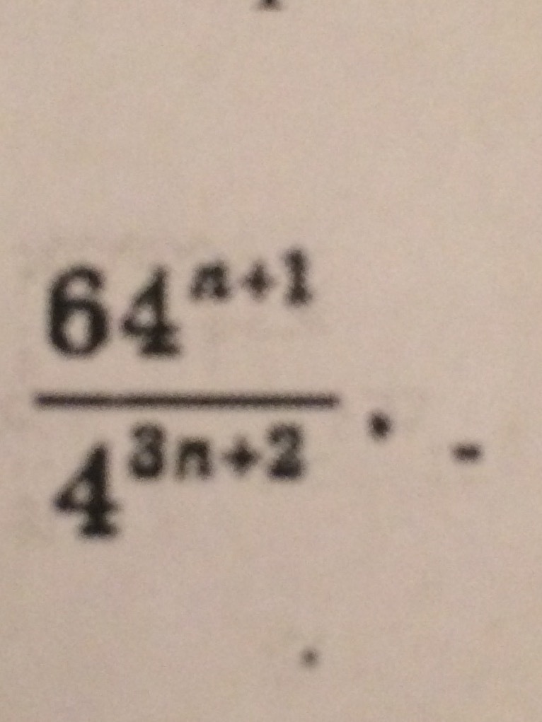 64ⁿ⁺¹/4³ⁿ⁺²=4³⁽ⁿ⁺¹⁾/4³ⁿ⁺²=4³ⁿ⁺³/4³ⁿ⁺² = 4³ⁿ⁺³⁻⁽³ⁿ⁺²⁾ =4³ⁿ⁺³⁻³ⁿ⁻²=4¹ = 4
