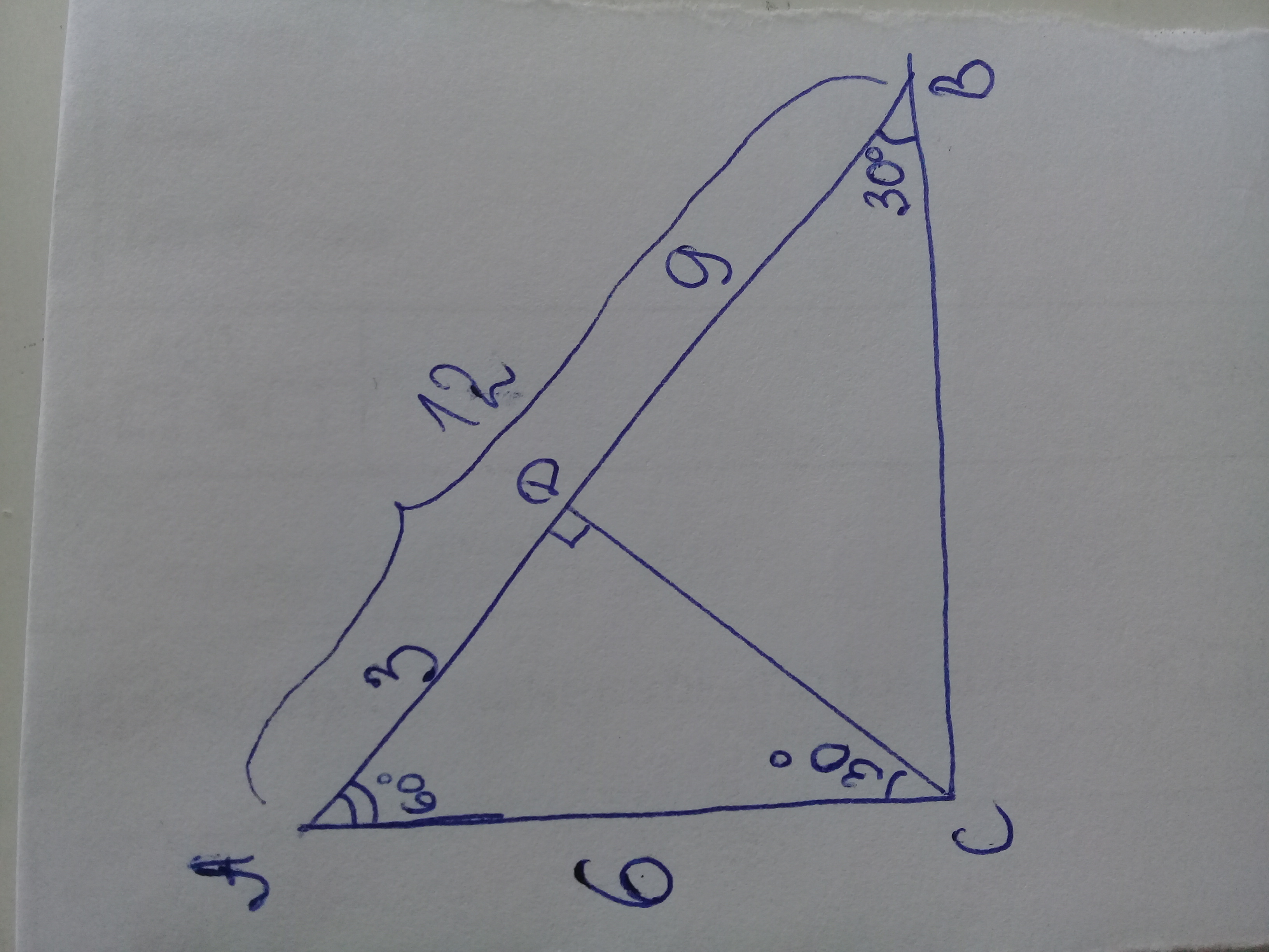 прямоугольном треугольнике АВС (уг. С-прямой) проведена высота СД. Найдите длины отрезков АД и ВД, если гипотенуза равна если гипотенуза равна 12 см а уг СВА=30градусов.