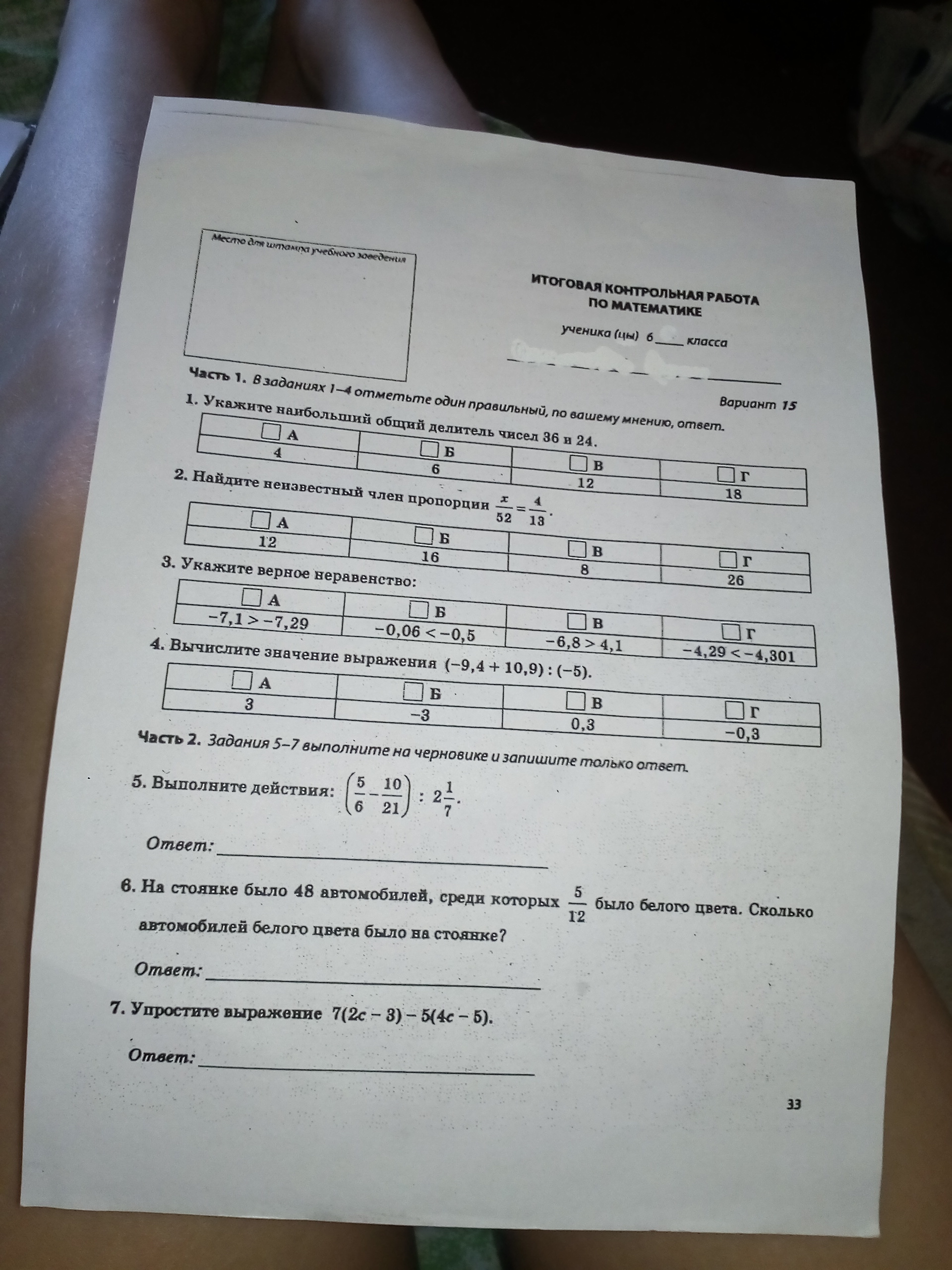 7(2с - 3) - 5 (4с - 5) = 14с - 21 - 20с + 25 = -6с + 4