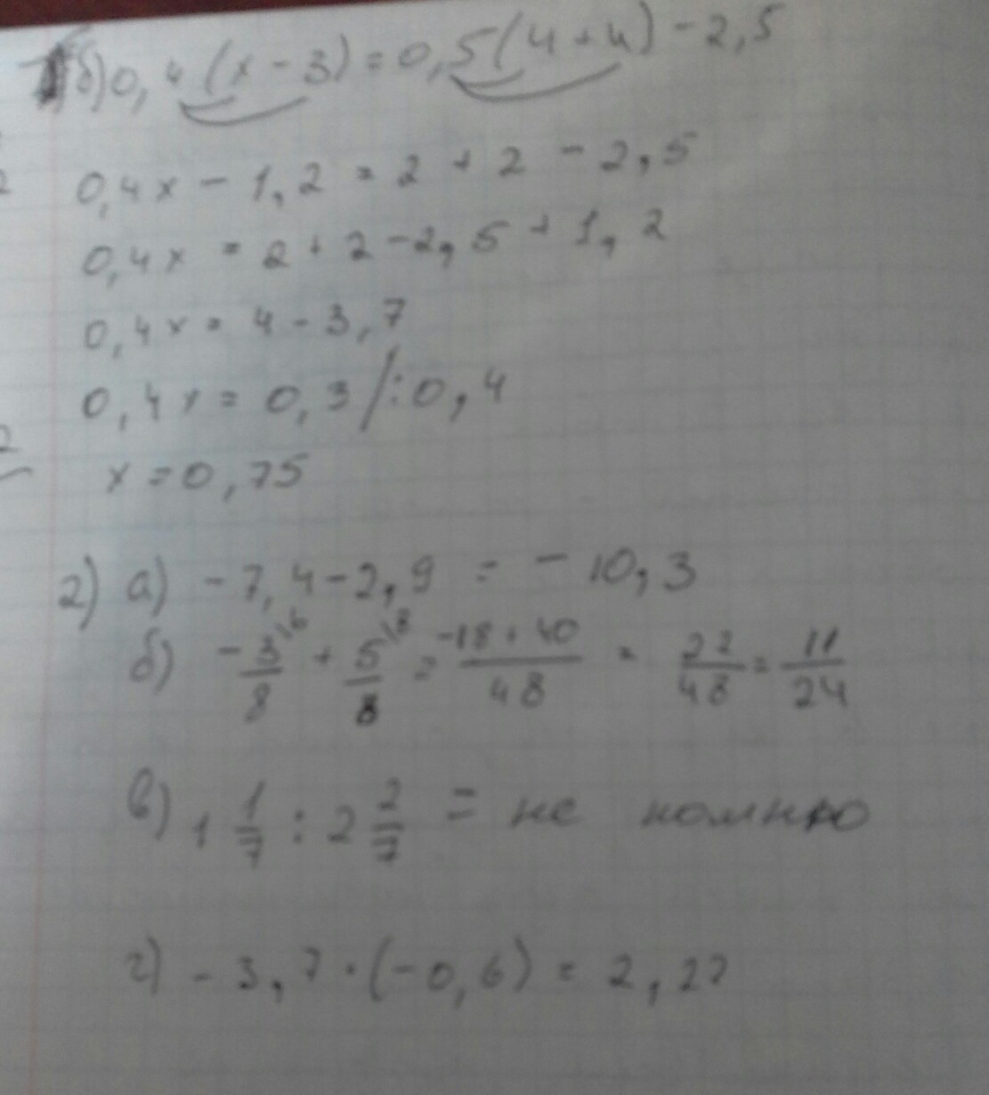 б)0,4(х-3)=0,5(4+4)-2,5.