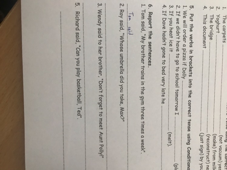 1 Tom said that his brother trained in the gym three times a week.
