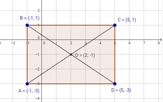 Даны координаты трёх вершин прямоугольника ABCD A(-1 -3) C(5 1) B(5 -3)
