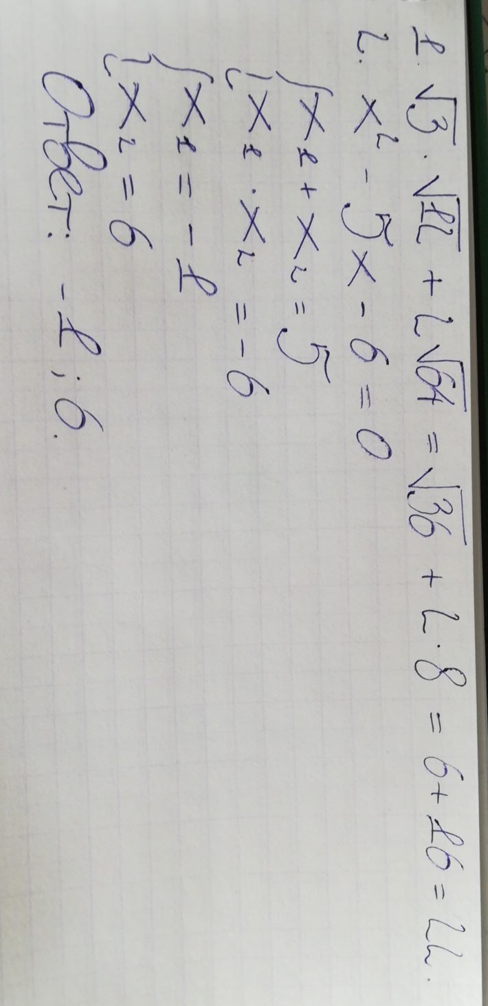Данное уравнение можно решить через Дискриминант, а также используя теорему, обратную теореме Виета (x1 + x2 = -b ; x1 * x2 = c)