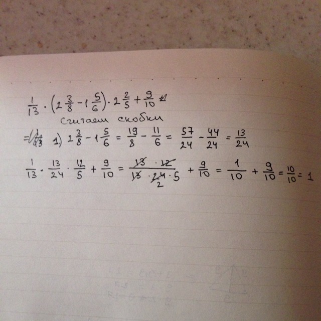 1/13*(2 3/8-1 5/6)*2 2/5+9/10