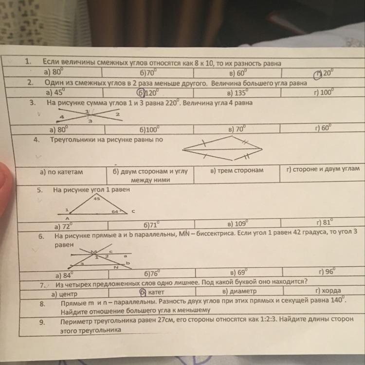 5) в. т.к. по теореме о внешнем угле он равен сумме двух не смежных с ним углов.