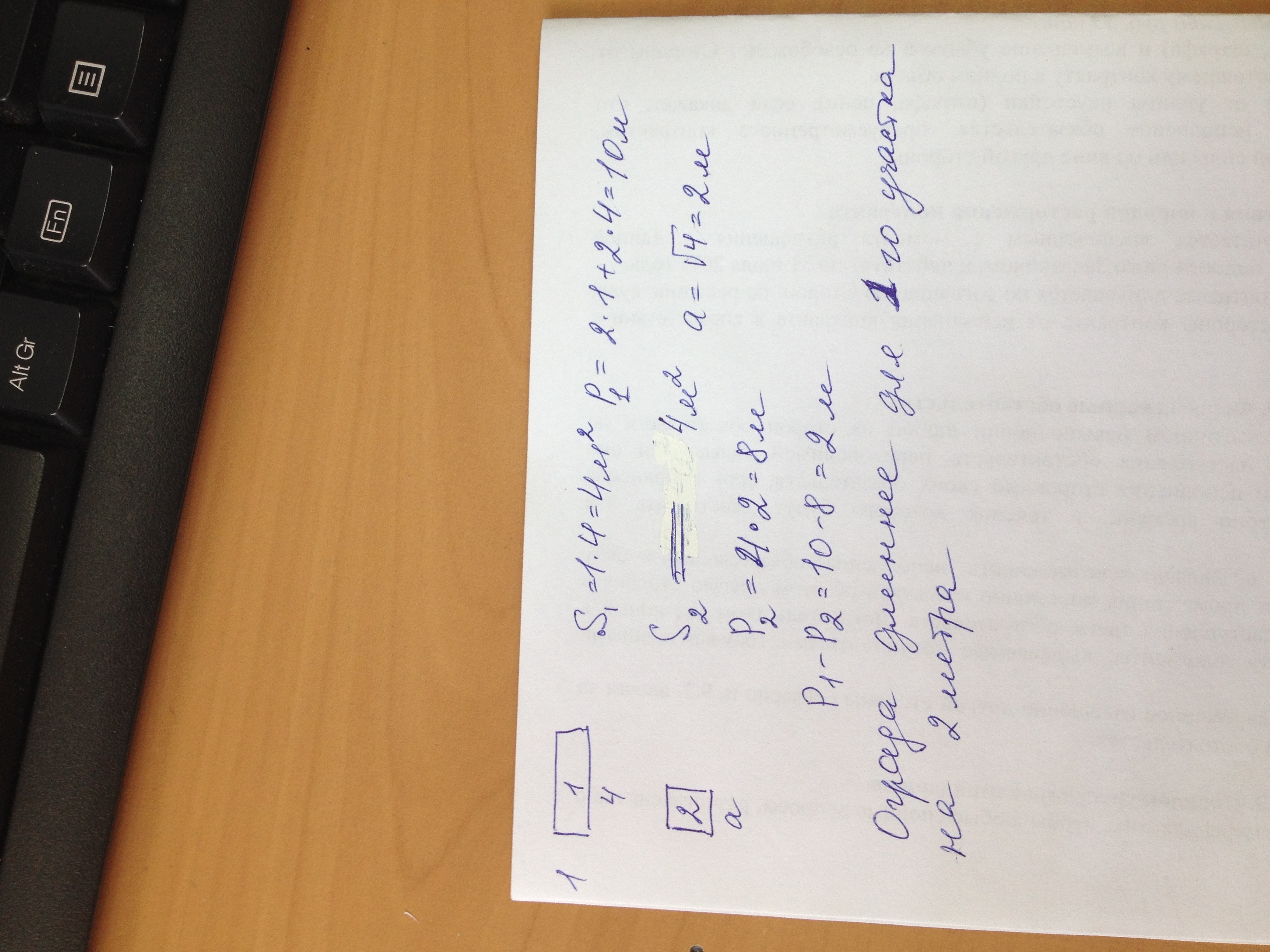 дачник решил огородить два участка земли. один участок прямоугольный размеры 1 метр и 4 метра , а другой квадратный имеющий площадь , что и прямоугольный . для какого участка ограда будет больше и на сколько