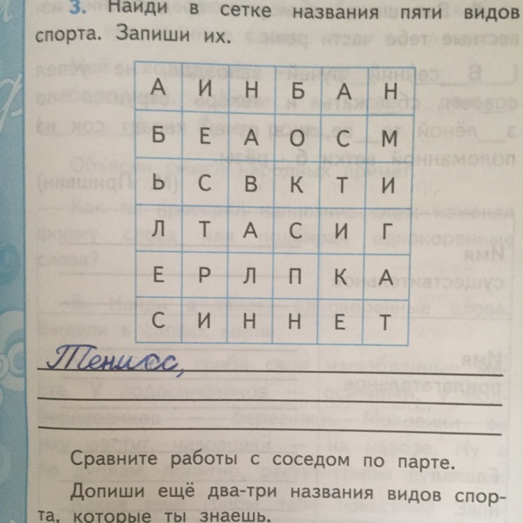 Бокс, плавание , теннис , реслинг ( ну тут уже не цепочка ) , баскетбол ( тоже не цепочка ) , бег ( не цепочка ) ..Ну вот так.