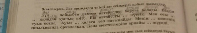 Бұл қалаға пойызбен немесе автобуспен баруға болады. Біздің үй қаладан қашық емес. Біз автобусты аялдамада күттік.Мен осы елде туып-өстім. Менің үйім көшенің қиылысында орналасқан. Қала мектептеріне арнайы автобус жүреді.