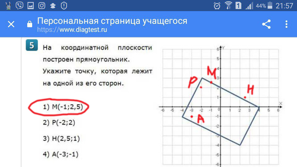 Если отступить по оси Х влево(ту минус)1 и подняться по у на 2,5, то попадёшь на сторону прямоугольника