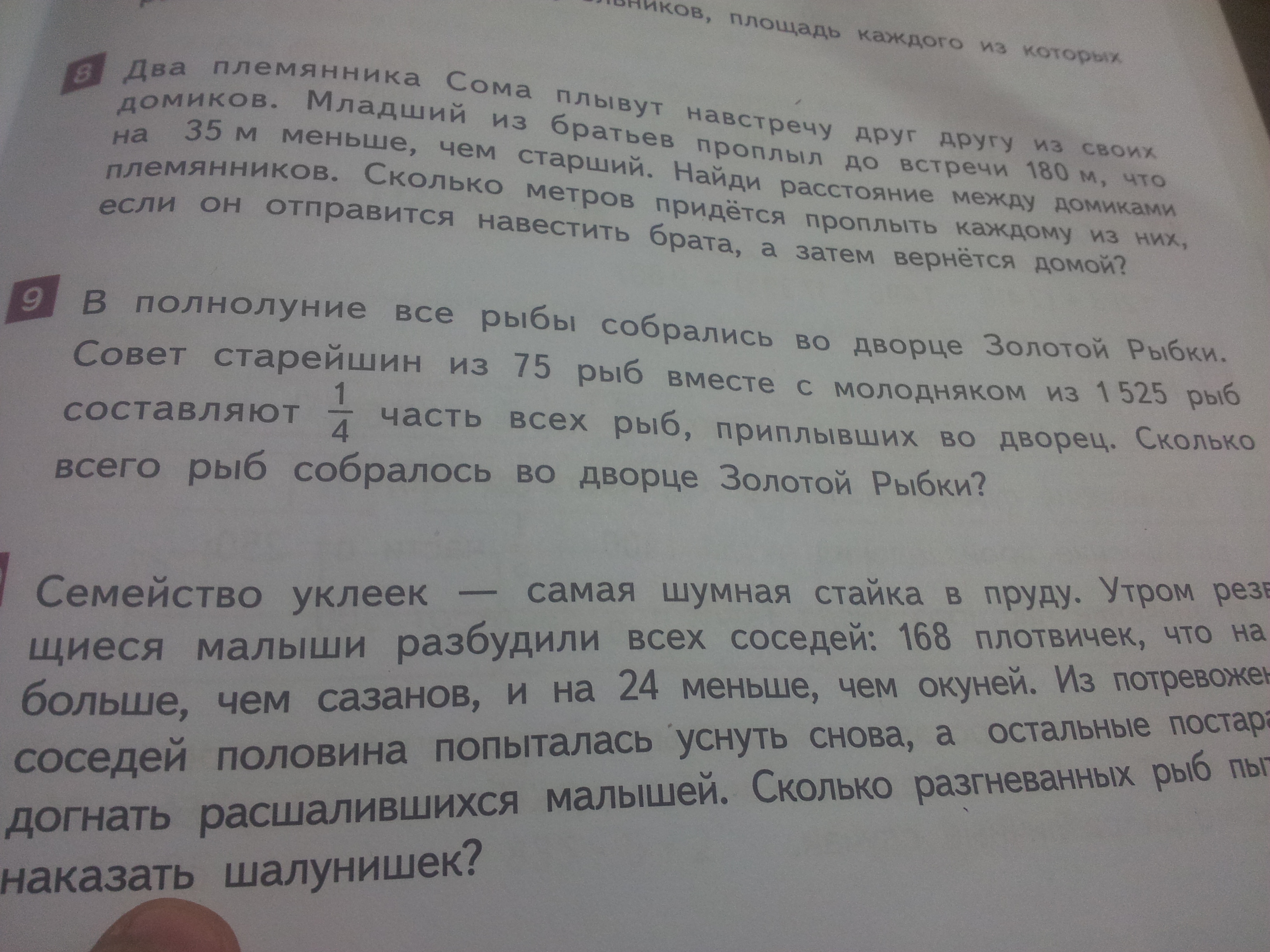 В 8-ом задании надо найти сколько метров проплыл старший, а потом ты сможешь ответить на остольные вопросы