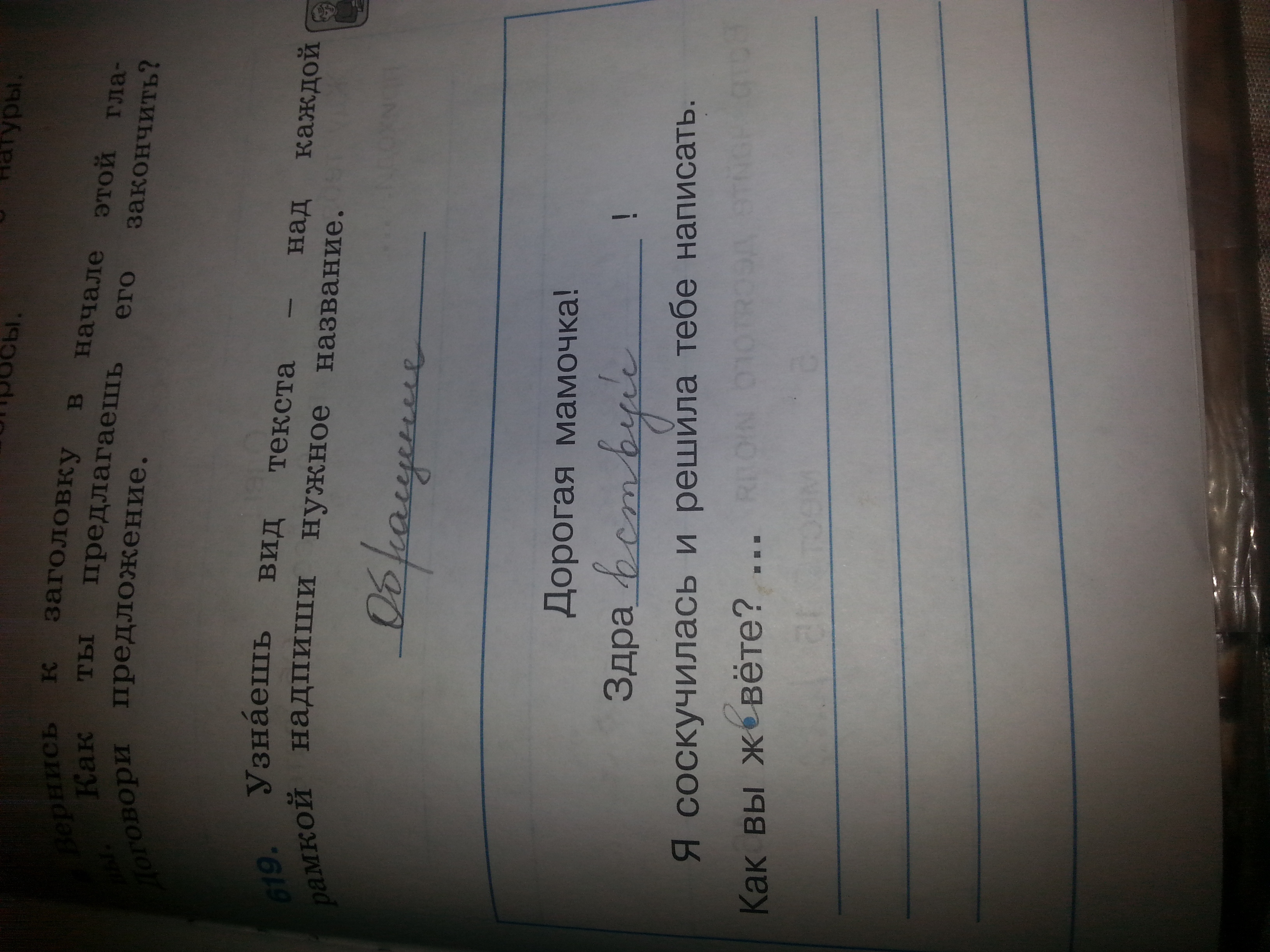 Я соскучилась и решила тебе написать.Как вы живете? Как поживает кот Муська? Я очень по тебе скучаю и жду твоего возвращения.С любовью,твоя дочь