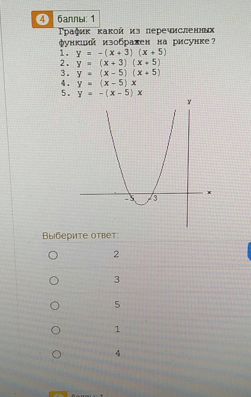 График какой из перечисленных функций изображен на рисунке?