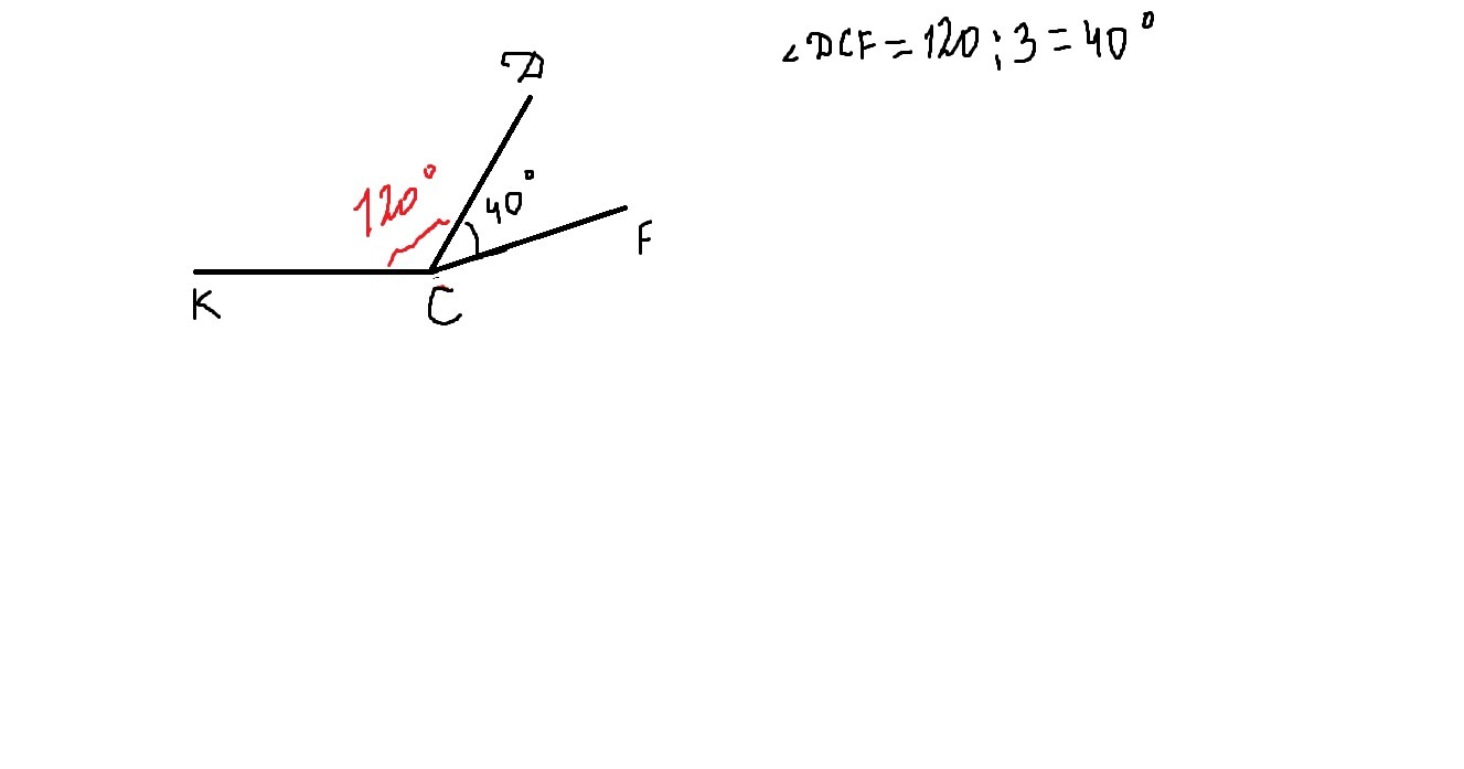 Луч СД разделил угол KCF на два угла КСД и ДСF. Найти градусную меру угла KCF, если угол KCД=120°,а угол ДCF меньше угла KCД в 3 раза. Построить эти углы Решите Пожалуйста!!!